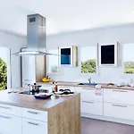 Neben den Annehmlichkeiten für Selbstversorger wie einer kompletten Küche bietet die Villa auch eine Essecke. Es gibt auch eine Mikrowelle und Küchenutensilien in der Küche.